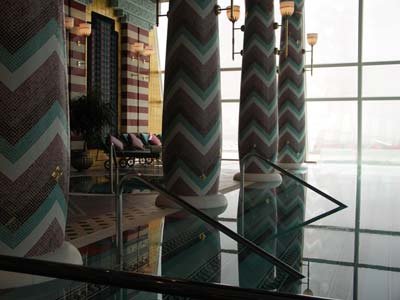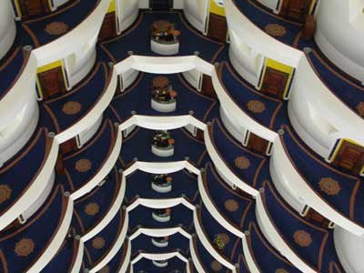 The towering Burj Al Arab only contains 28 floors because each one is double the height of a typical story inside a hotel.